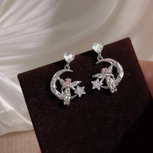 Pendientes colgantes de cristal con estrella y corazón de ángel