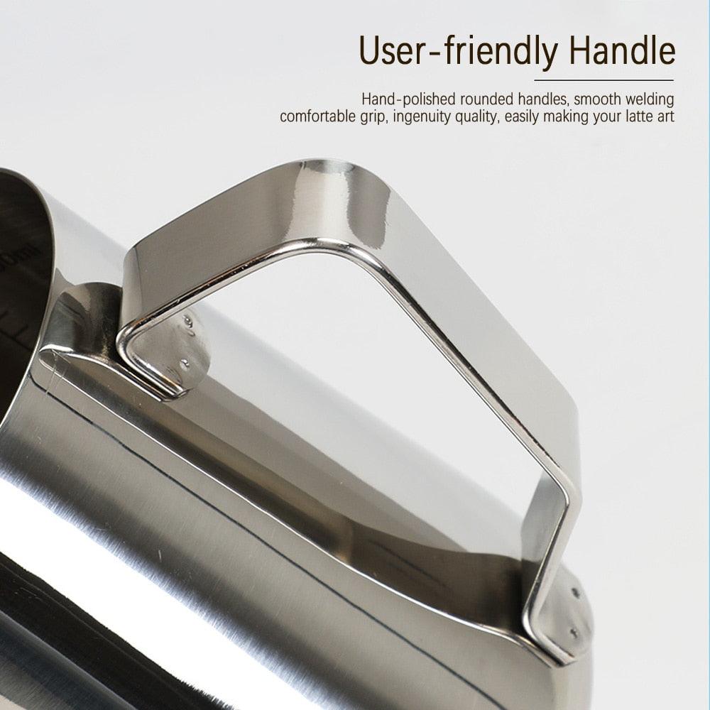 ¡Presentamos la jarra para espumar leche Coffee Latte! Esta jarra de espuma de acero inoxidable de calidad profesional es ideal para preparar lattes, capuchinos, macchiatos y más cremosos y sabrosos. El diseño liviano y fácil de verter permite obtener un resultado perfecto en todo momento. El asa exclusiva de la jarra garantiza un agarre cómodo que no resbalará ni quemará la mano. Además de las bebidas espresso, puedes utilizar esta jarra para calentar rápidamente leche para chocolate caliente u otras recetas deliciosas.