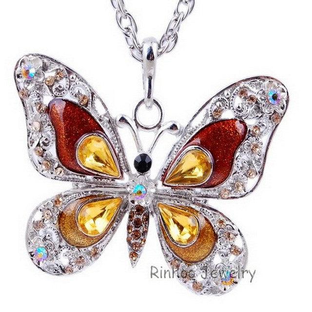 Eleva tu estilo otoñal con nuestro encantador collar de mariposas coloridas. Este accesorio popular y moderno presenta un colgante de mariposa de cristal y esmalte bellamente diseñado suspendido de una delicada cadena larga. Abraza la elegancia de la temporada mientras añades un toque de encanto inspirado en la naturaleza a tu conjunto. Perfecto para mujeres que aprecian la artesanía compleja y los accesorios de moda.