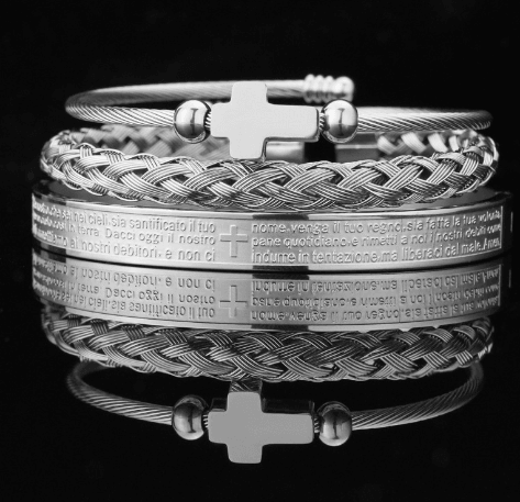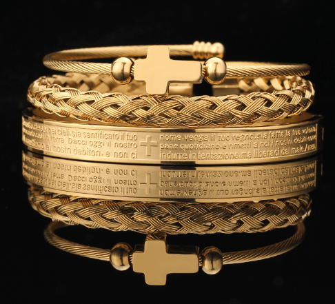 ¡Presentamos el juego de pulseras con cruz española tallada! Este lujoso conjunto de pulseras es perfecto para cualquier hombre que quiera añadir un toque de estilo y elegancia a su look. Hechas de acero inoxidable de alta calidad, estas pulseras cuentan con un hermoso dije de cruz con intrincados detalles tallados. El toque final perfecto para cualquier conjunto, estas pulseras seguramente harán una declaración. Pulseira, también conocida como "el corazón que late" en español, este juego de pulsera es imprescindible para cualquier hombre conocedor de la moda.