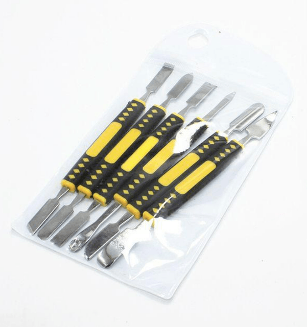 Nuestras herramientas de reparación electrónica están hechas de acero al carbono resistente y flexible. El diseño de doble filo con puntas afiladas facilita la inserción en pequeñas grietas y espacios reducidos. Esto la convierte en la herramienta perfecta para reparaciones en iPhones, teléfonos Galaxy, Kindles, iPads, tabletas, MacBooks, relojes, gafas, computadoras portátiles, consolas de juegos y otros dispositivos electrónicos. También ayuda a quitar las pantallas LCD de los dispositivos móviles durante las reparaciones. La palanca de metal, juego de 6 piezas, palanca de arranque, teléfono móvil, mini herramienta digital de desmontaje de electrodomésticos múltiples es perfecta para todas sus necesidades de reparación electrónica.