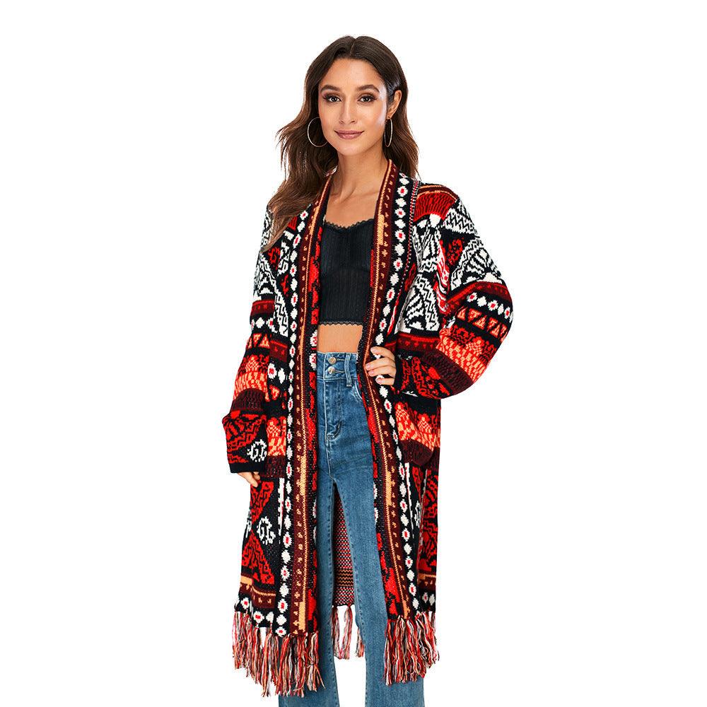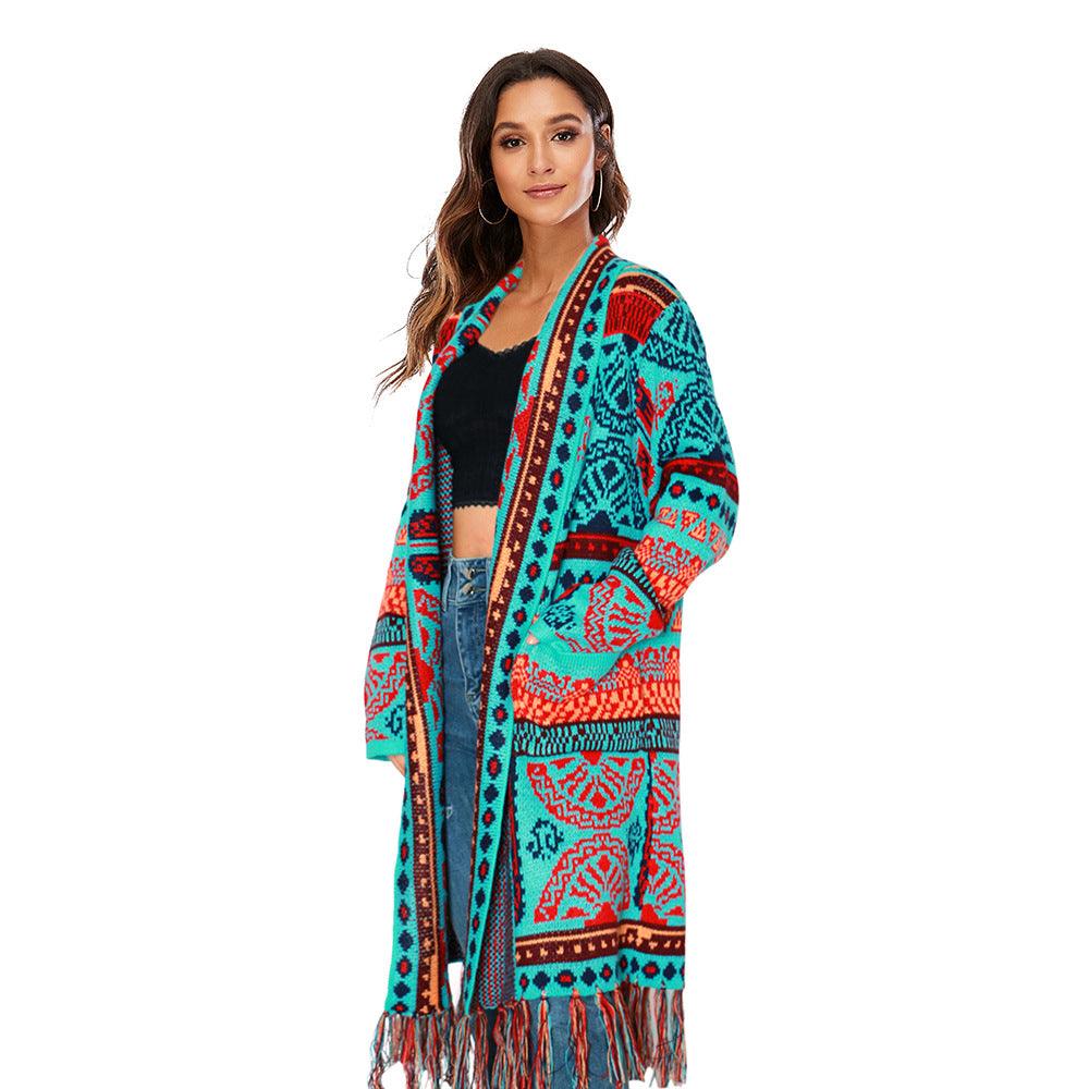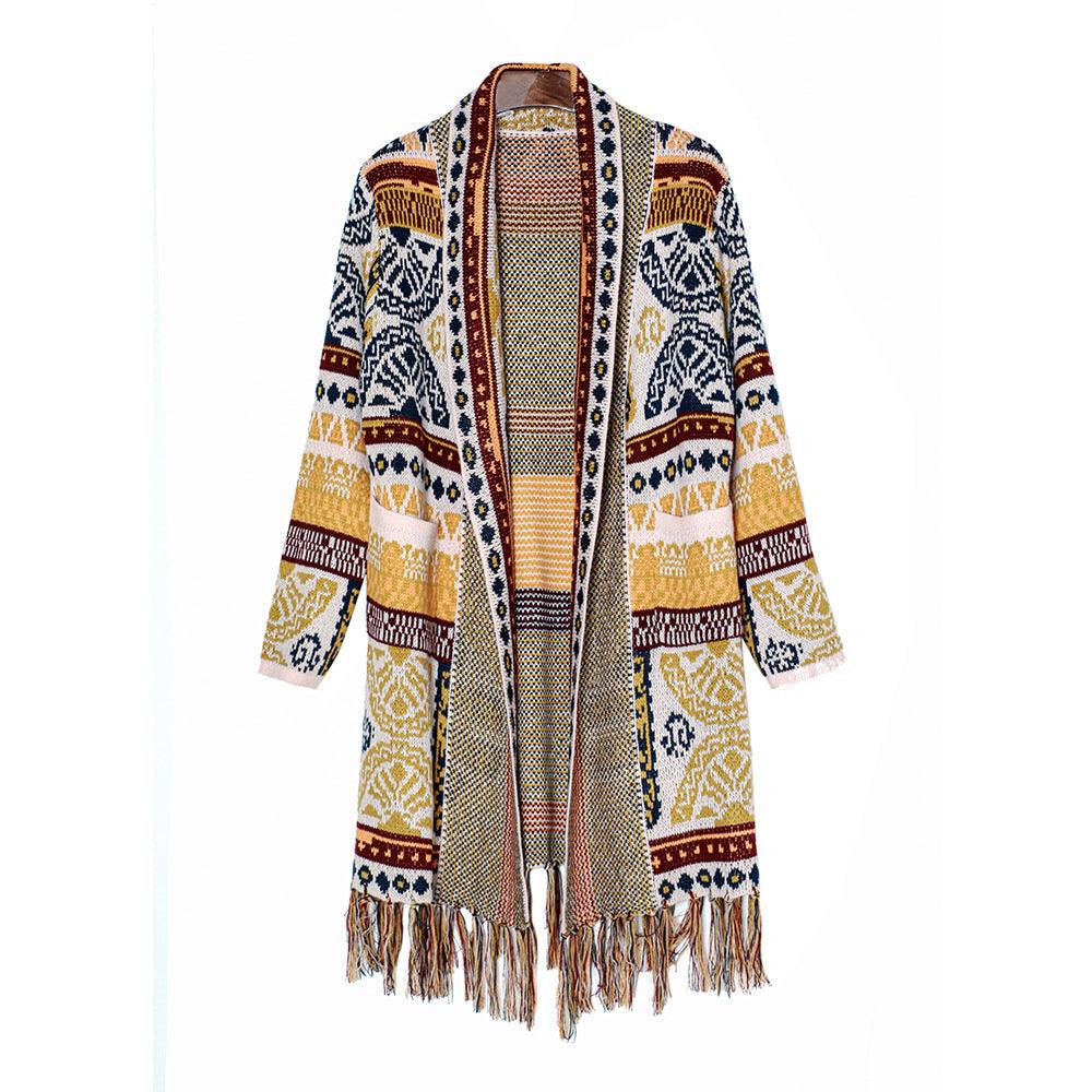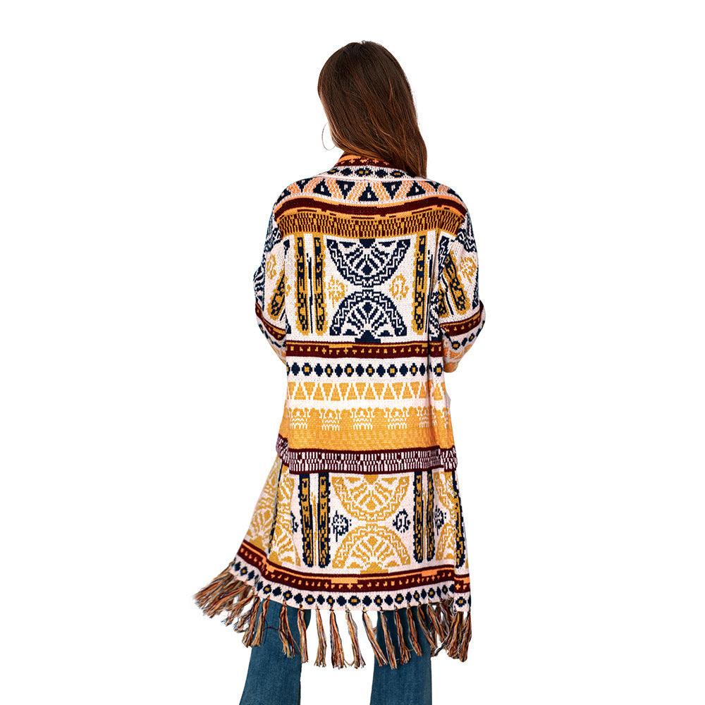 Deja que tu estilo hable por sí mismo con el cárdigan con flecos étnicos. Este cárdigan elegante y profesional es perfecto para hacer una declaración de moda sin comprometer su profesionalismo. Está diseñado con hermosos flecos de inspiración étnica combinados con colores neutros, lo que te permite lucir la cantidad justa de personalidad. La tela liviana se mueve perfectamente contigo durante todo el día, ya sea que estés en la oficina o en la ciudad. Mejora tu guardarropa y agrega esta pieza elegante y versátil a tu colección hoy.
