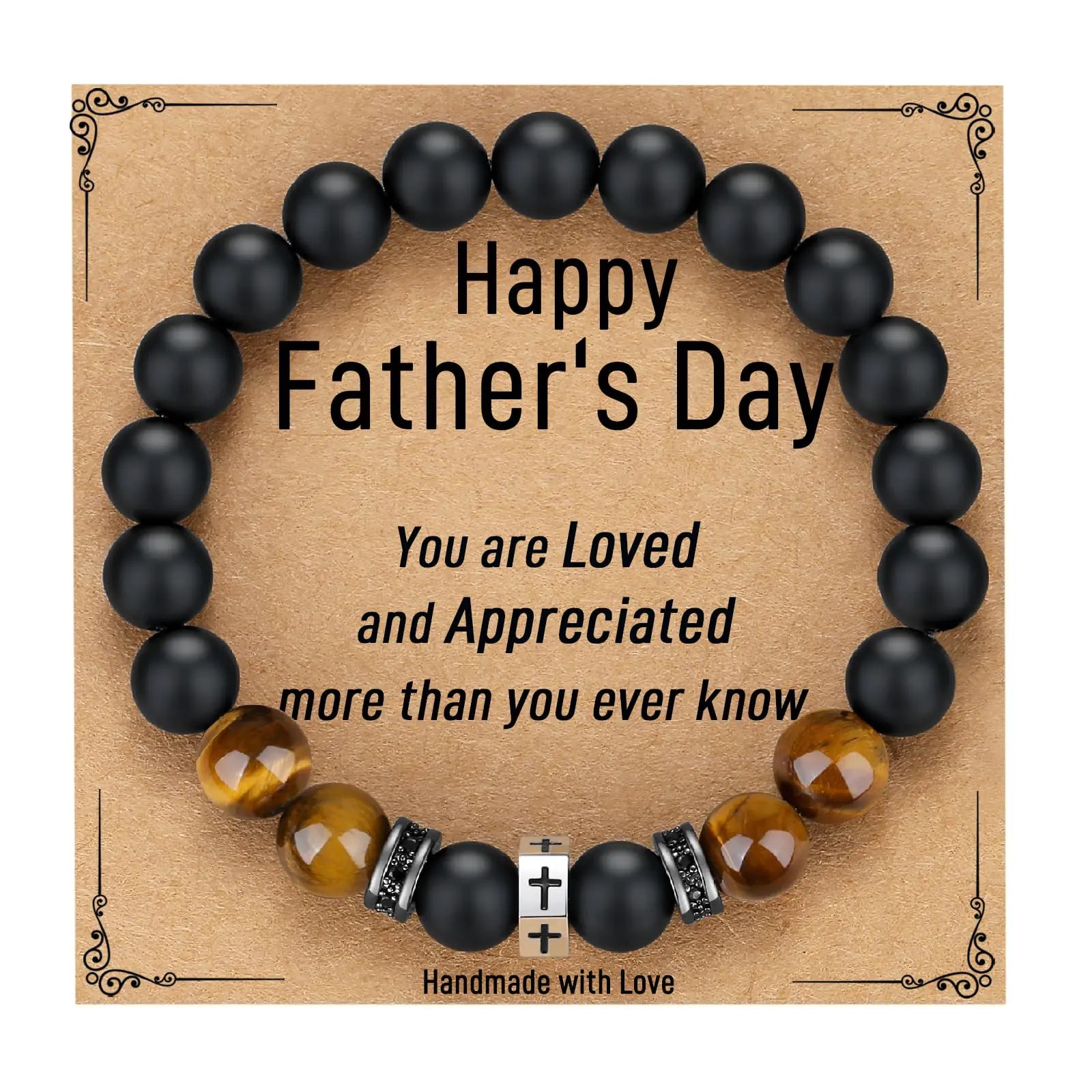 [【 Fathers Day Bracelet 】Natural stone combined with classic cross charm is designed for everyday wear. This bracelet is a welcome addition to any man due to its unique design and natural stone meaning. Perfect fathers day gifts for any special man in your life. 【 Happy Fathers Day Gifts 】Surprise your man with our bead bracelet truly unique inspired and special just like him. Perfect as fathers day gifts from wife fathers day gifts from daughter son dad gifts for fathers day fathers day gifts for grandpa step dad fathers day gifts first fathers day gifts for new dad bonus step dad fathers day gifts fathers day gifts for husband awesome fathers day gifts. 【 Premium Quality 】 This cross bracelet is handmade with REAL NATURAL gemstones every natural bead has been carefully selected manually one by one. Then the remaining crystals are crafted by skilled craftsmen with strong elastic cord and can be easily slipped on and off the wrist. Not easy to fade or break. "【 Stretchy Size 】 The tiger eye bracelets length is 8 inches and it is elastic to fit most wrists of men. It’s very easy to put on and take off. Comfortable to wear. This timeless piece of jewelry will surely melt his heart. Great serve as cool gifts for men who have everything and want nothing."]