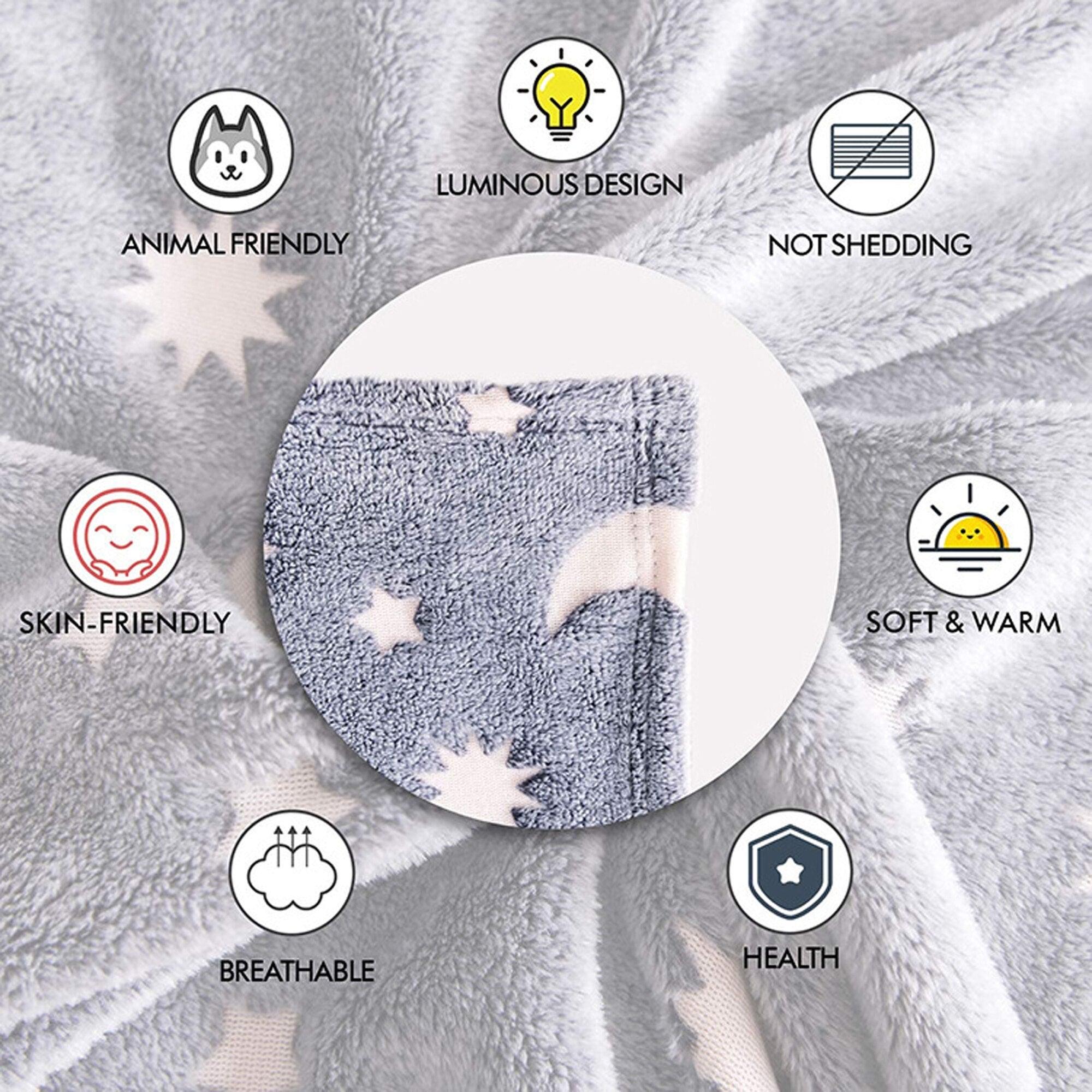 ¡Descubre algo nuevo y emocionante con nuestra suave manta polar que brilla en la oscuridad! Esta elegante manta presenta un patrón de estrellas y luna que brilla en la oscuridad, agregando un toque misterioso e interesante a cualquier dormitorio. El diseño único asegurará que su ropa de cama destaque por completo. La sensación de nube de esta lujosa manta brinda una comodidad increíble, ya sea que se embarque en una aventura o se acurruque solo para ver su película favorita. Para activar su efecto de brillo en la oscuridad, simplemente expóngalo a una fuente de luz brillante o a la luz solar durante 10-15 minutos; ¡Después de absorber estos rayos de energía, la noche se volverá brillante y hermosa! Fácil de mantener, esta manta se puede lavar a máquina o a mano sin comprometer la calidad. Añade un elemento de intriga a tu vida hoy con nuestra manta que brilla en la oscuridad.
