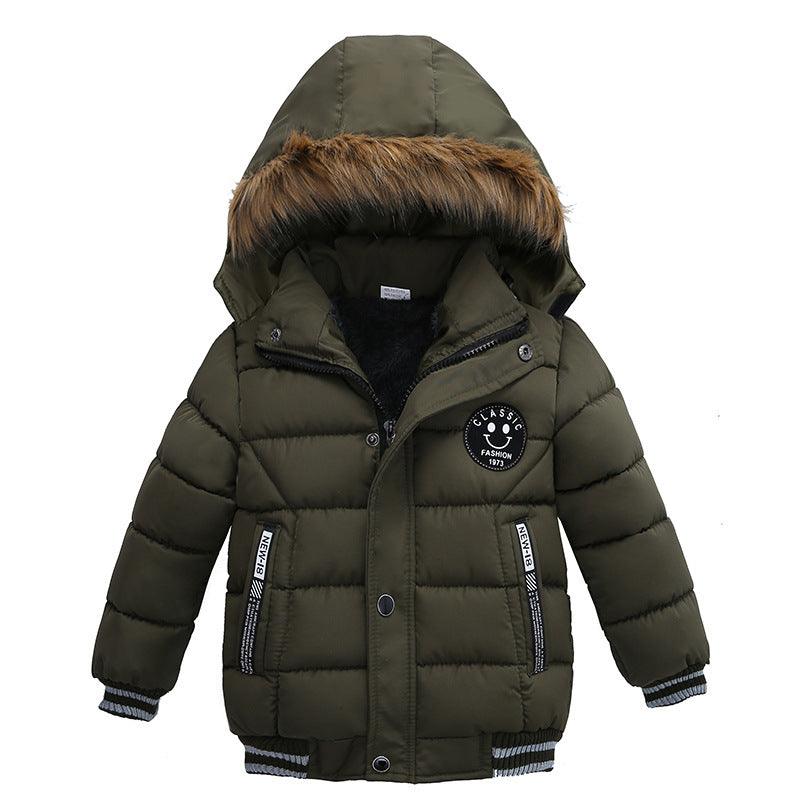 Especificaciones: Estilo: versión coreana Edad adecuada: bebés (1 ~ 3 años, 80 ~ 100 cm) Temporada adecuada: invierno, otoño Proceso de tela: tratamiento suave Relleno: Fibra de poliéster (poliéster) Con o sin capucha: Con capucha Espesor: engrosado