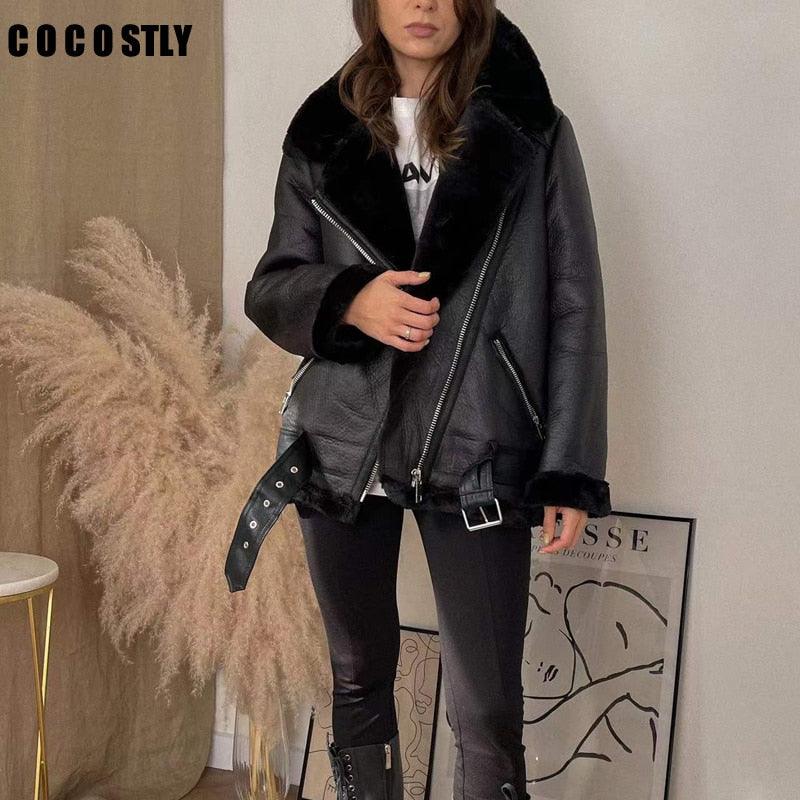 Presentamos nuestro nuevo abrigo de piel sintética de invierno 2023 para mujer: una combinación de estilo y calidez que te distingue. Confeccionado para los meses más fríos, este abrigo grueso y acogedor presenta un corte holgado y un exterior de piel sintética. Su diseño de alta calidad garantiza comodidad y durabilidad, lo que lo convierte en un complemento esencial para tu guardarropa de invierno. Con cierre de cremallera y un toque del estilo clásico de chaqueta locomotora, este abrigo combina moda con funcionalidad. El suave forro de piel sintética añade un toque lujoso y te mantiene abrigado y elegante en climas fríos. Mejora tu atuendo de invierno con nuestro abrigo de piel sintética. Ya sea que salga para una salida informal o una noche en la ciudad, este abrigo es la fusión perfecta de comodidad, moda y calidad. Abrace el invierno con confianza y gracia mientras se mantiene cómodo con esta extraordinaria prenda exterior.