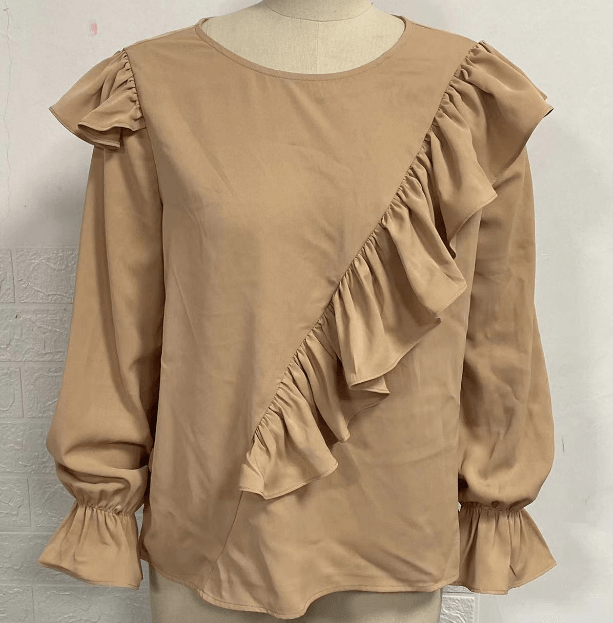 Luce nítida y elegante dondequiera que te lleve tu carrera con la blusa con cuello redondo y volantes para mujer de Office Work. Cuidadosamente elaborado en tela de alta calidad para crear una apariencia atemporal y profesional que te hará sentir seguro de 9 a 5. Los volantes elegantes agregan dimensión mientras que el escote en forma de O acentúa el estilo "informal de negocios" de este jersey clásico. Puede pasar sin esfuerzo del trabajo al fin de semana gracias a su tejido elástico y cómodo que permite una movilidad total durante todo el día. Perfecta para añadir energía divertida pero realmente inteligente a cualquier conjunto, la blusa con cuello redondo y volantes para mujer de oficina seguramente se convertirá en un elemento básico del guardarropa de oficina.