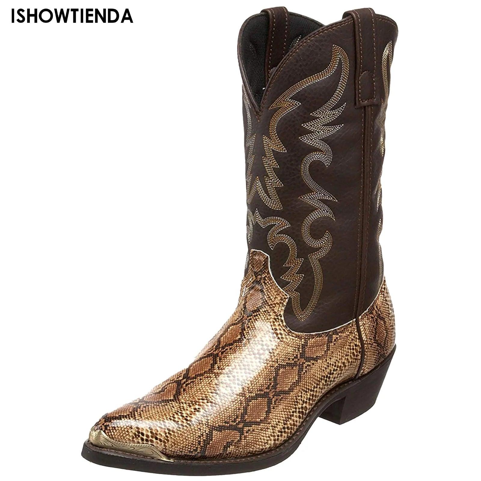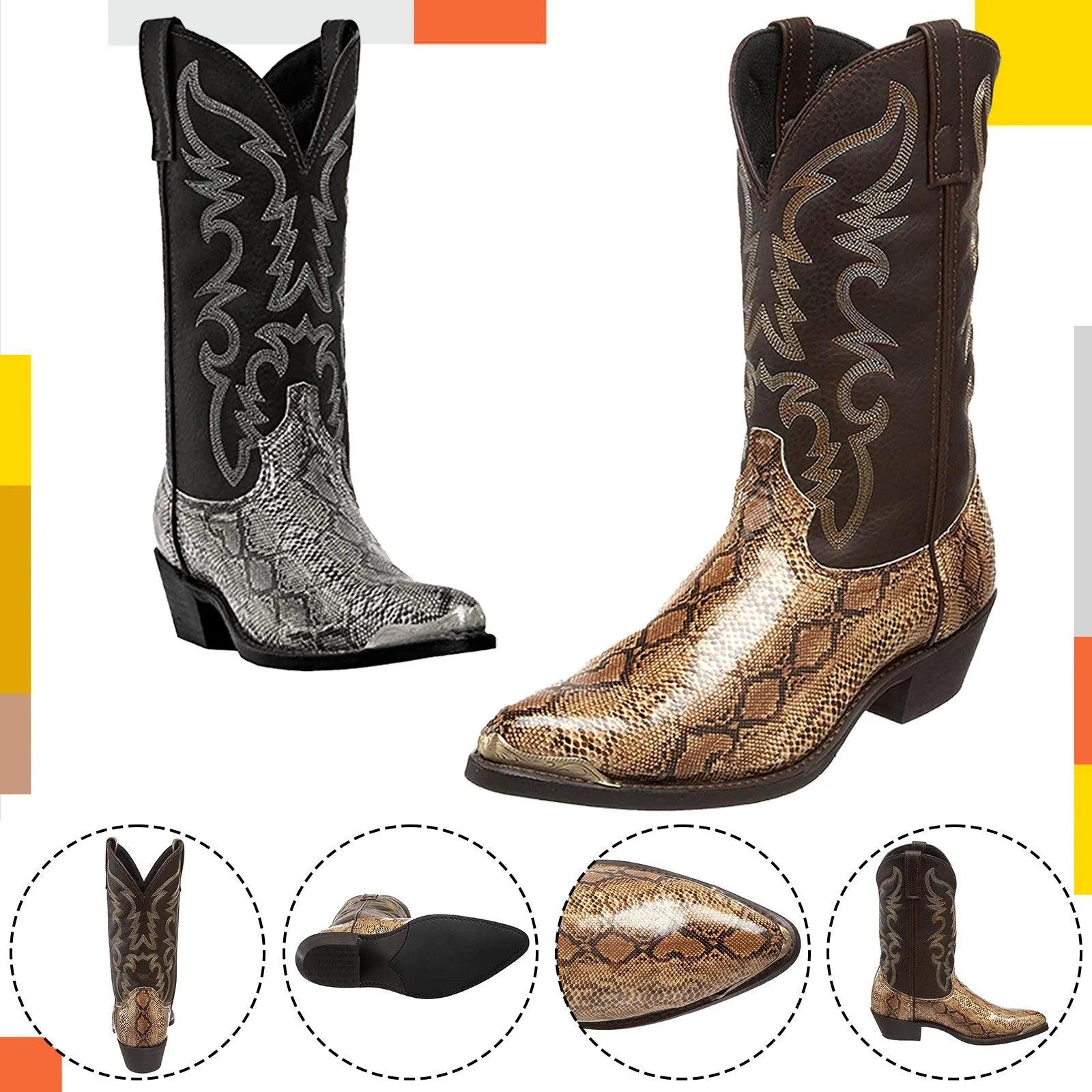 Men's And Women's Same Style Pointed Toe Low-heel Stitching Square Heel Embroidered Mid-Pipe Boots