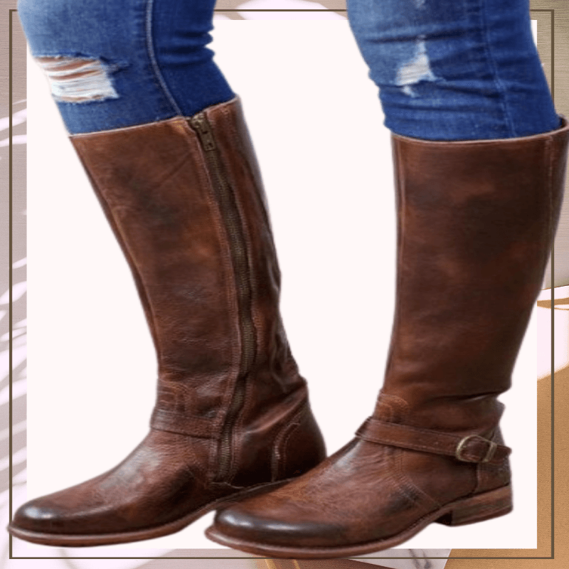 Estas encantadoras botas de caballero de media pantorrilla son el complemento perfecto para cualquier conjunto. Con una parte superior de PU, hebilla de latón, detalle de punta redonda, detalle de tacón bajo cuadrado y detalles de costuras de cuero, estas botas son elegantes y cómodas. El cierre de cremallera lateral garantiza un ajuste perfecto, mientras que el tubo alto hasta la mitad de la pantorrilla proporciona la cantidad justa de cobertura. Ya sea que te estés vistiendo para una ocasión especial o simplemente agregues un toque de sofisticación a tu look diario, estas botas son imprescindibles en tu guardarropa.