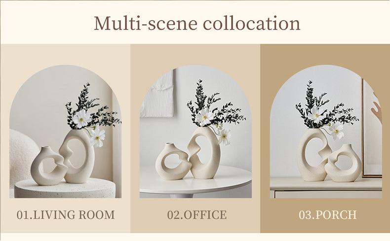 Presentamos nuestro juego de 2 jarrones nórdicos de cerámica, un complemento perfecto para realzar la decoración de tu hogar. Elaborados con cerámica de alta calidad, estos elegantes jarrones presentan un diseño minimalista que irradia sofisticación moderna. Ya sea que elija exhibir flores frescas o usarlas como acentos decorativos independientes, realzan cualquier espacio sin esfuerzo. Su apariencia elegante y su estética de inspiración nórdica las convierten en piezas versátiles que combinan a la perfección con varios estilos de interiores. Añade un toque de elegancia y refinamiento a tu hogar con nuestro juego de 2 jarrones nórdicos de cerámica.