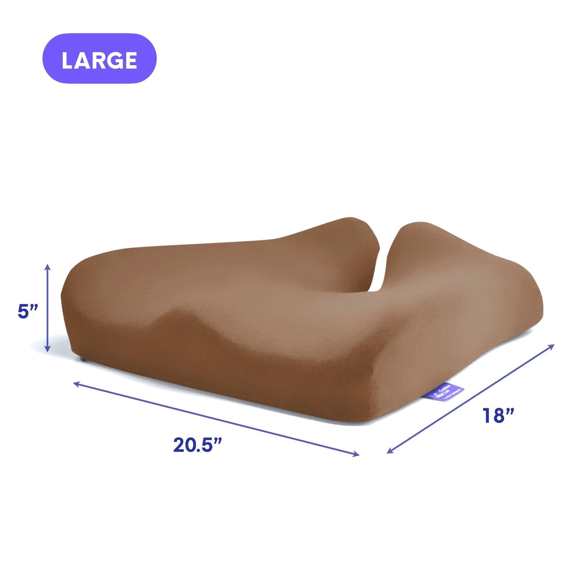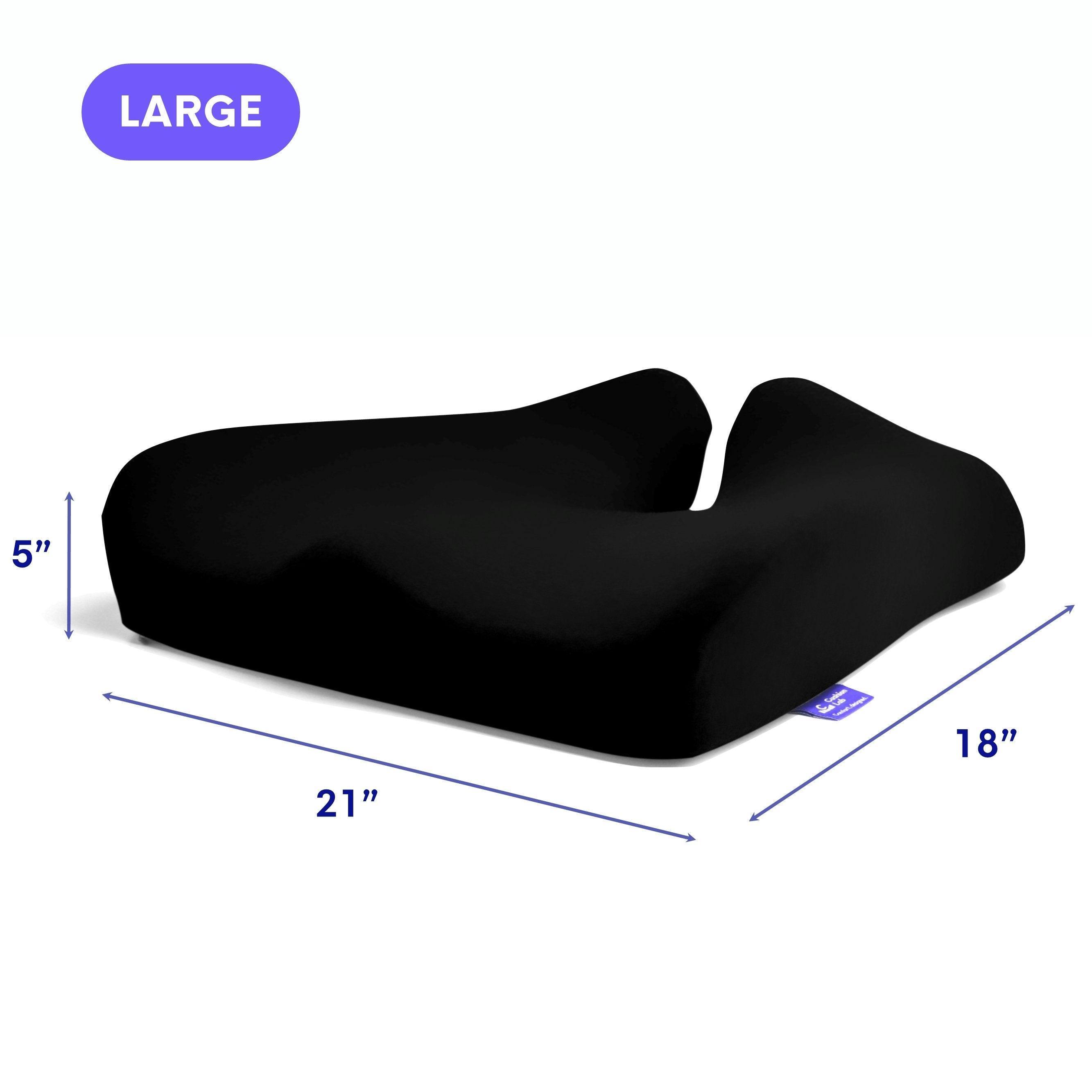 Presentamos el cojín de asiento ergonómico con alivio de presión, la solución perfecta para sentarse mejor y más cómodo en cualquier silla, en casa, en el trabajo o mientras conduce. Este cojín está diseñado por expertos ergonomistas pensando en la innovación. Su espuma viscoelástica de carbón extradensa patentada no solo es suave y transpirable para una máxima comodidad, sino también muy resistente a los olores. La forma de este cojín está diseñada específicamente para aliviar la presión de la cadera y mejorar la postura al sentarse, satisfaciendo sus necesidades de asiento durante todo el día sin molestias ni fatiga. Además, su base con agarre lo fija perfectamente a cualquier superficie de silla para que no tenga que preocuparse de que se resbale. Para obtener la máxima comodidad al sentarse en cualquier silla, combínela con nuestra almohada lumbar con alivio de espalda para obtener el máximo apoyo lumbar. Disponible en dos tamaños: Estándar (18 W x 15,5 L x 4 H pulgadas) y Grande (21 W x 18 L x 5 H pulgadas) con una sugerencia de Grande para personas que pesan más de 210 libras. ¡Consigue el tuyo hoy y disfruta de total comodidad durante todo el día!