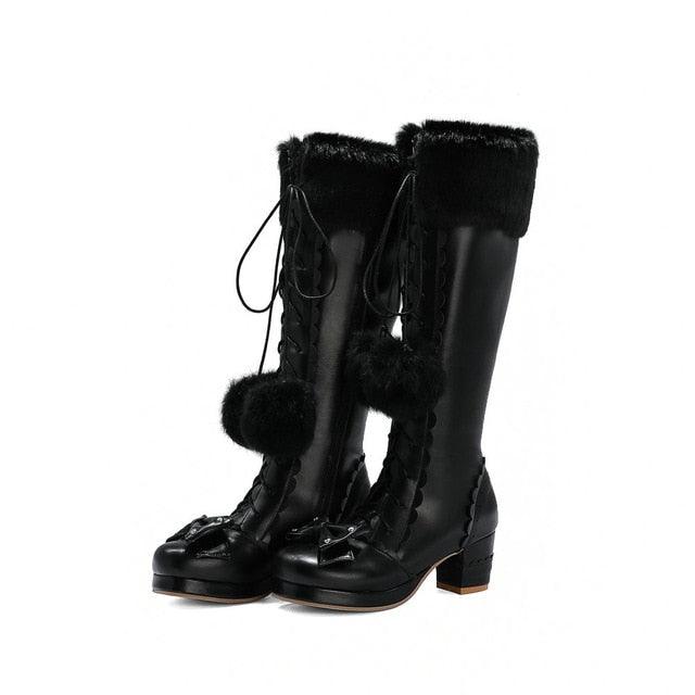 Presentamos las botas altas Princess Bowtie, el complemento perfecto para tu guardarropa de invierno. Modernas y funcionales, estas botas están confeccionadas con cuero PU suave para mantenerte abrigado y elegante. El detalle de pajarita con cordones añade un toque elegante mientras que la cremallera lateral garantiza un ajuste perfecto. ¡El tacón grueso brinda soporte y estabilidad para largos días de caminata o baile en fiestas con tus amigas princesas cosplay! Ya sea que esté buscando el accesorio perfecto para el trabajo o el fin de semana, estas botas ofrecen comodidad y estilo en un paquete elegante. Así que prepárate para hacer una declaración; Con sus detalles de diseño de lujo, estas botas altas Princess Bowtie seguramente llamarán la atención dondequiera que vayas.