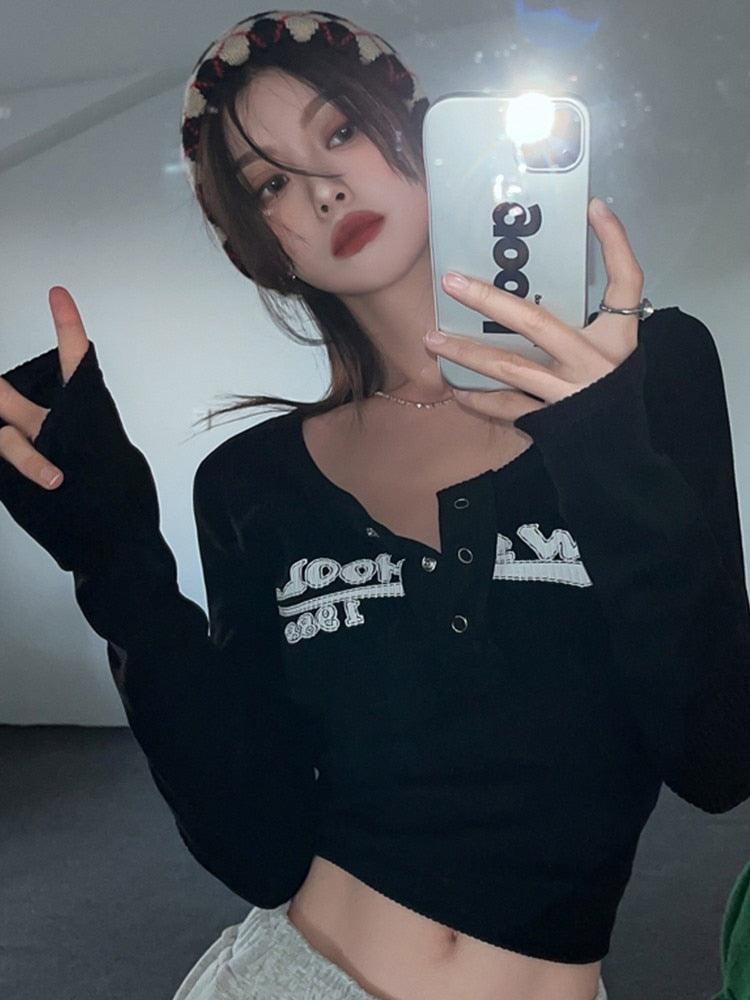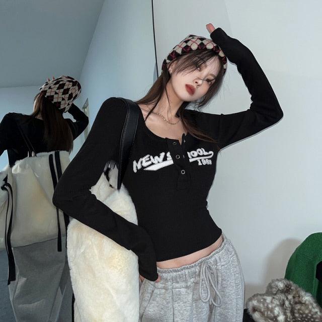 Camiseta de manga larga elástica con estampado de graffiti retro