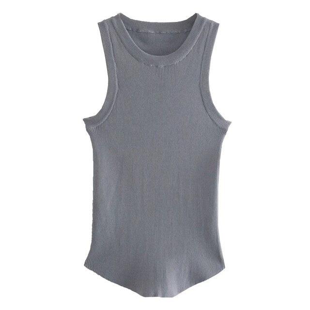 Cuello en O de punto ajustado acanalado Sin mangas