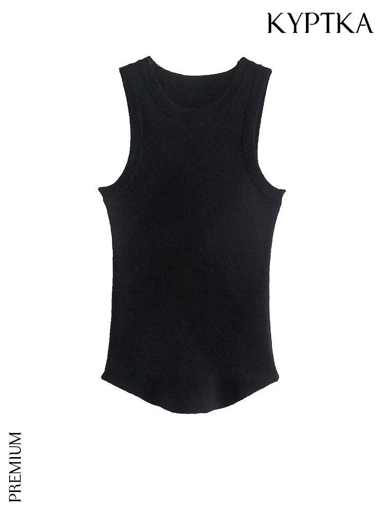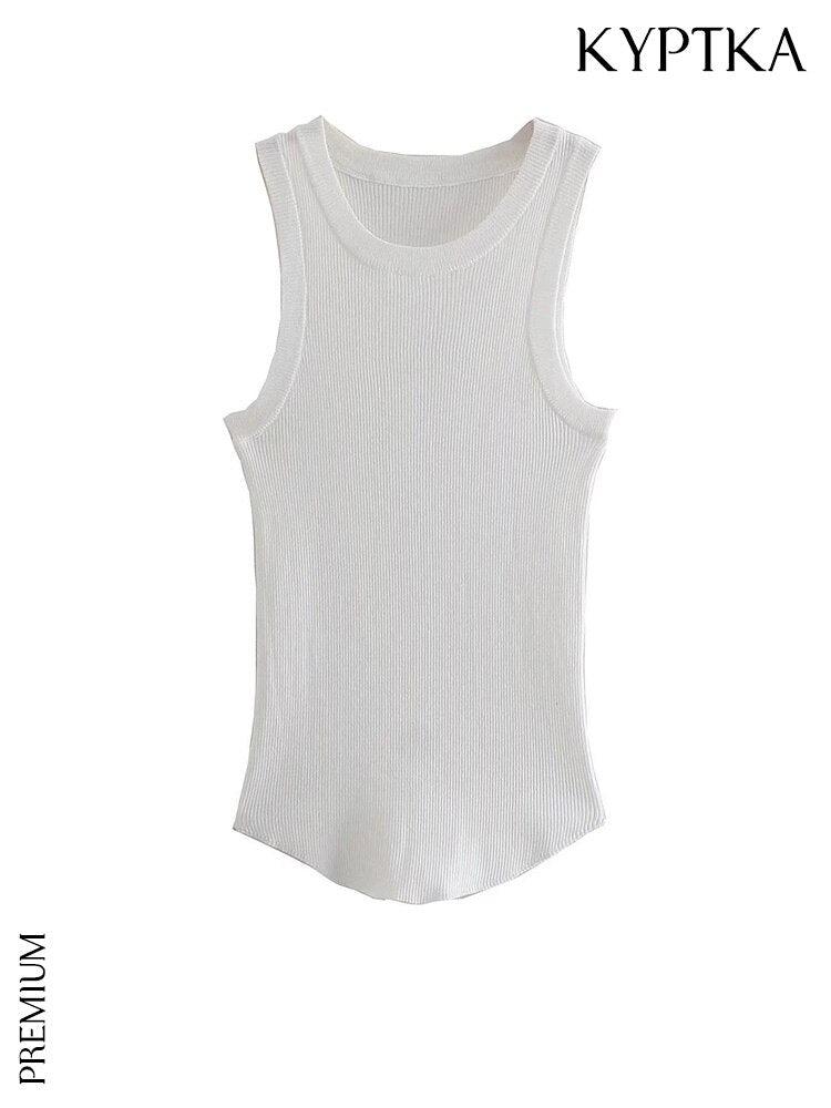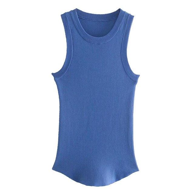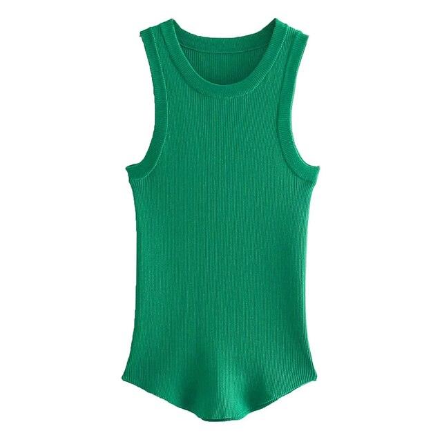 Haz alarde de tu estilo con esta camiseta sin mangas de punto acanalado de inspiración vintage. Está hecho de un material suave y elástico que abrazará tus curvas en todos los lugares correctos. La silueta ajustada se acentúa con un femenino cuello redondo y un corte sin mangas. Perfecta para usar en capas o sola, esta camiseta sin mangas se convertirá en un elemento básico de tu guardarropa. Vístelo con una chaqueta para un look de trabajo elegante o úsalo con jeans para un atuendo informal de fin de semana.