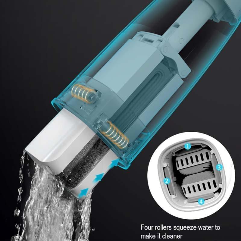 Introducing the Ultimate Cleaning Tool - the Self Wringing Mop! Get your floors clean faster with this innovative mop that offers efficient and fast absorption of dirt and dust. The soft cotton blend head is easily hardened and doesn't require soaking in water, so you don't have to wait for it to be ready to use. Plus, the mop comes with a special cleaning fluid that contains silicone components, making it easy to remove stubborn stains without extra scrubbing. With its superior wringing ability, the Self Wringing Mop will ensure that your floors are quick-drying and spotless every time. Thanks to its efficient design, even difficult areas like drilling seams or tight corners can be mopped effortlessly. Put an end to tedious manual mopping with this revolutionary product - buy now, and enjoy your spotlessly clean home!