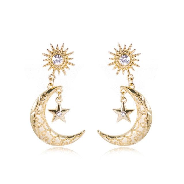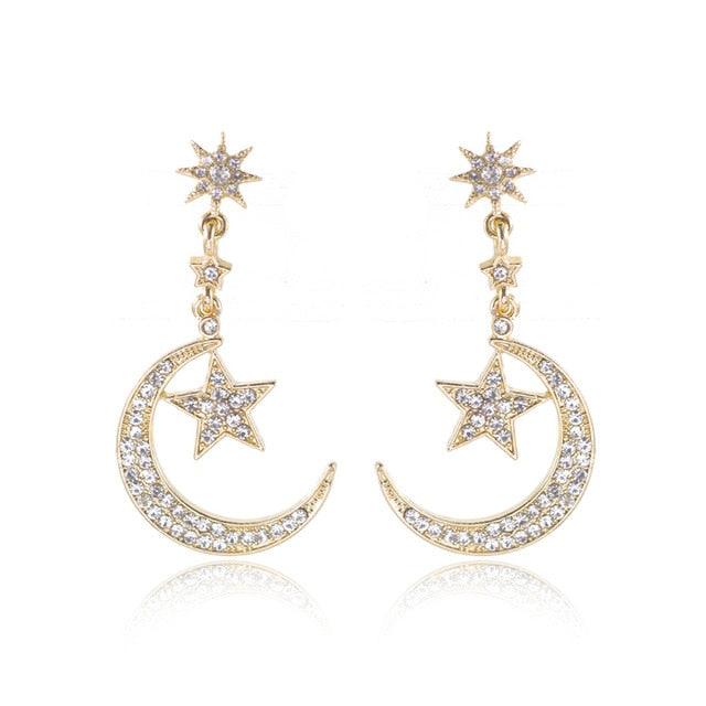 Pendientes colgantes de estrella y luna