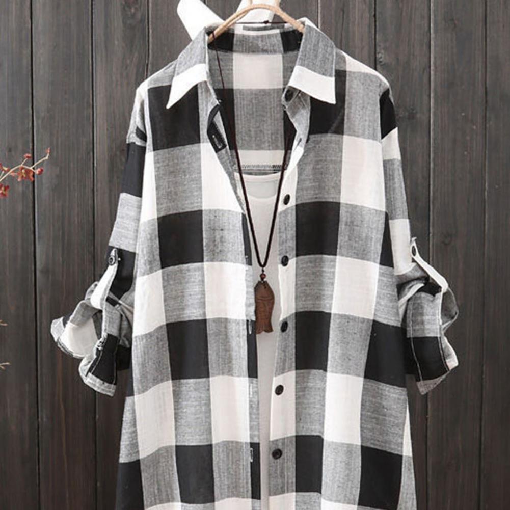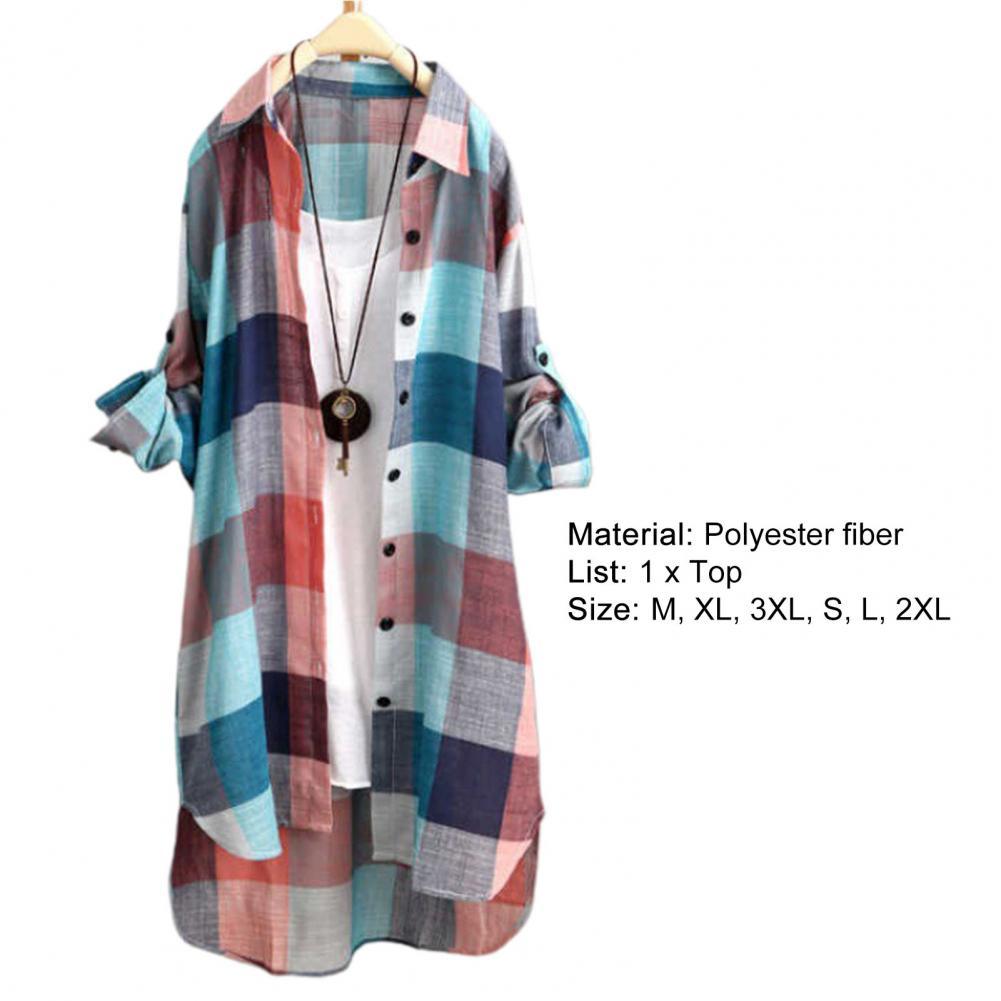 Introducing the Sunscreen Shirt, the perfect shirt for any woman looking to protect herself from the sun while maintaining her stylish edge. This shirt features a turn-down collar design that flatters the neckline, and roll-up sleeves with button closures for a hot, on-trend look. The plaid print is eye-catching and unique, and the loose fit allows you to move and breathe easily. Made from high quality polyester material, this shirt is soft, breathable, and comfortable to wear – perfect for a day in the sun. Choose from six sizes (S-3XL) for the perfect fit.