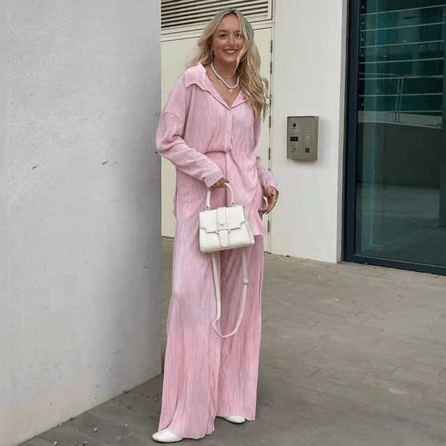 Este traje profesional y elegante de dos piezas de manga larga es perfecto para cualquier mujer de oficina que quiera sentirse sexy y segura. Confeccionado con un material cómodo, este traje te hará sentir genial durante todo el día. El elegante diseño de cuello y abrigo tipo chaqueta es perfecto para cualquier reunión o evento, mientras que el conjunto informal de pantalones anchos brinda una apariencia relajada pero elegante. Ya sea que esté buscando un nuevo atuendo para el trabajo o para salir por la noche, este traje seguramente lo hará sentir mejor.