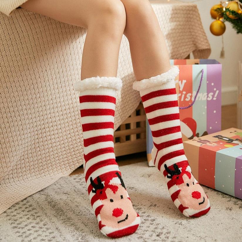 Envuelve tus pies con lujo con estos calcetines tipo pantuflas Fuzzy para mujer. Confeccionados con tela de alta calidad, son livianos, cálidos y suaves, lo que los convierte en la opción perfecta para descansar en la casa. La parte inferior de los calcetines está equipada con agarres antideslizantes de primera calidad, para que pueda caminar sin preocuparse de resbalar o deslizarse. Estos calcetines son un gran regalo para cualquier persona a la que le guste estar cómoda y acogedora.