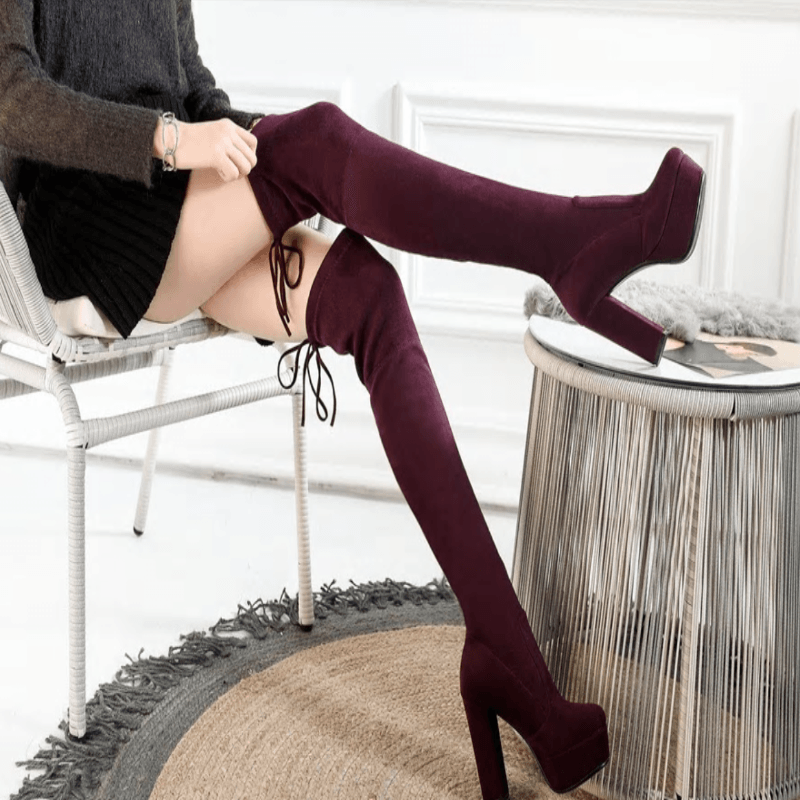 ¡Presentamos nuestras botas por encima de la rodilla para mujer! Estas botas elegantes y sexys están hechas de gamuza sintética de alta calidad, con un forro suave para mayor comodidad y un detalle de cinta para mayor estilo. El diseño de plataforma y tacón cuadrado los hace perfectos para cualquier ocasión, ya sea que te vistes para salir por la noche o simplemente agregas un toque de glamour a tu look diario. Con un cierre de cordones para un ajuste seguro, estas botas están disponibles en las tallas 34-43.