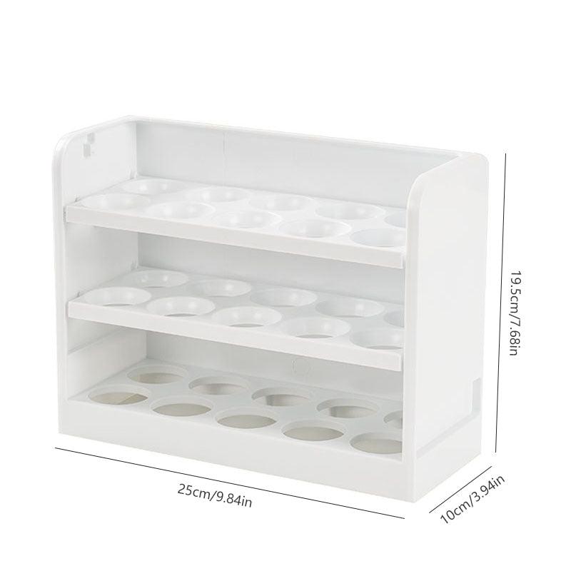 Chase kitchen chaos away with our 3 Layer Flip-Type Egg Storage Rack Refrigerator Organizer. This handy, professional-looking rack is designed to help you keep your eggs organized and safely stored in the refrigerator. Crafted with quality plastic, it flips and folds easily, giving you three layers of storage capacity that allows you to store up to 24 eggs. Not only will this bring harmony to your fridge, but it also makes cooking so much easier since all your eggs will be easy to find and accessible at a moment's notice. Plus, its unique folding design makes it easy to collapse into a flat shape for space-saving storage when not in use. Reclaim your kitchen with a sleek, functional way of organizing - get one of our 3 Layer Flip-Type Egg Storage Racks today!