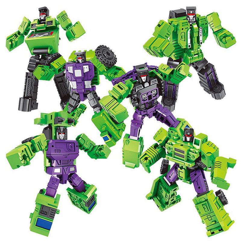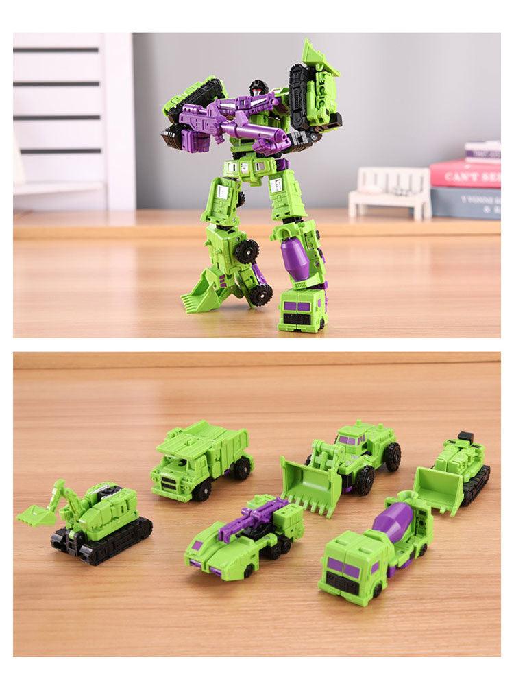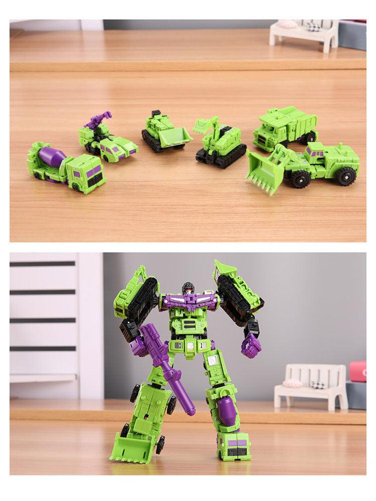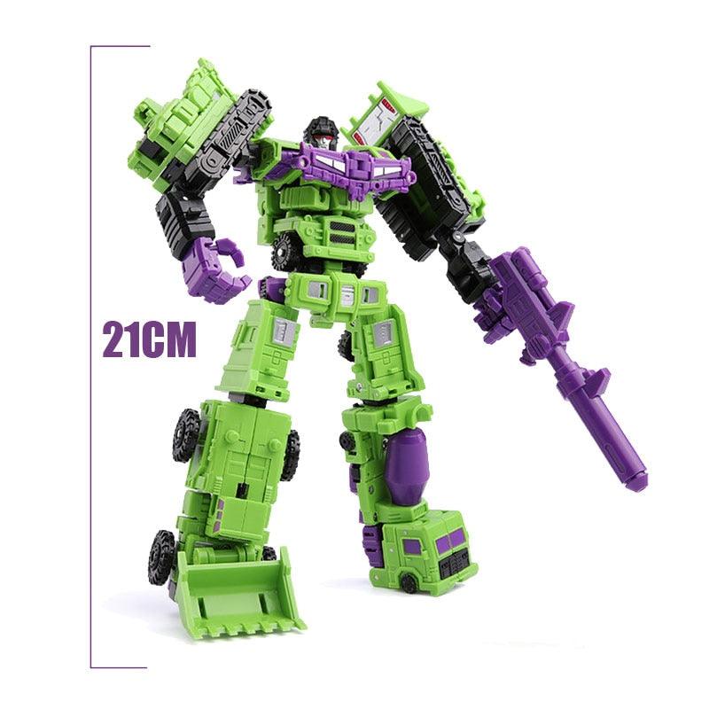 With the Action Figure Robot Plastic Toys, kids and adults alike can enjoy thrilling transformational play! This 6 in 1 model Mini Devastator is engineered from sturdy alloy and ABS material, making it a great toy as well as an excellent collectible. At 21cm tall, you can display your mini devasting robot proudly - or transform him into his six alternate forms for robotic battles with friends and family! Perfect for a birthday or holiday gift for the budding mathematician, engineer, scientist or robotics enthusiast in your life. With high-grade components and adjustable joints that allow for seamless movements and poses, this action figure is sure to be a hit with all ages. Get yours today and unleash the power of transformation!