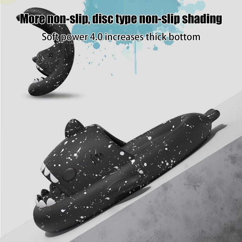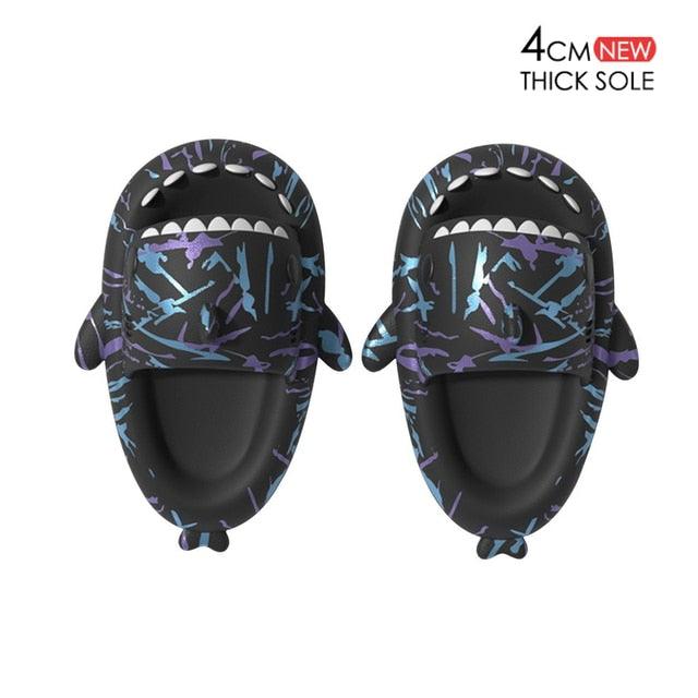 Introducing the Eva Soft Beach Shark Slippers! These super soft and comfortable slippers are perfect for lounging around the house or for a trip to the beach. The innovative design features a graffiti cloudy shark print on the top and a cute shark face on the bottom. The platform sole provides excellent support and stability, while the indoor anti-skid function keeps you safe on slippery surfaces. These stylish slippers are perfect for couples or individuals who want to add some fun and personality to their summer wardrobe. Order your pair today!