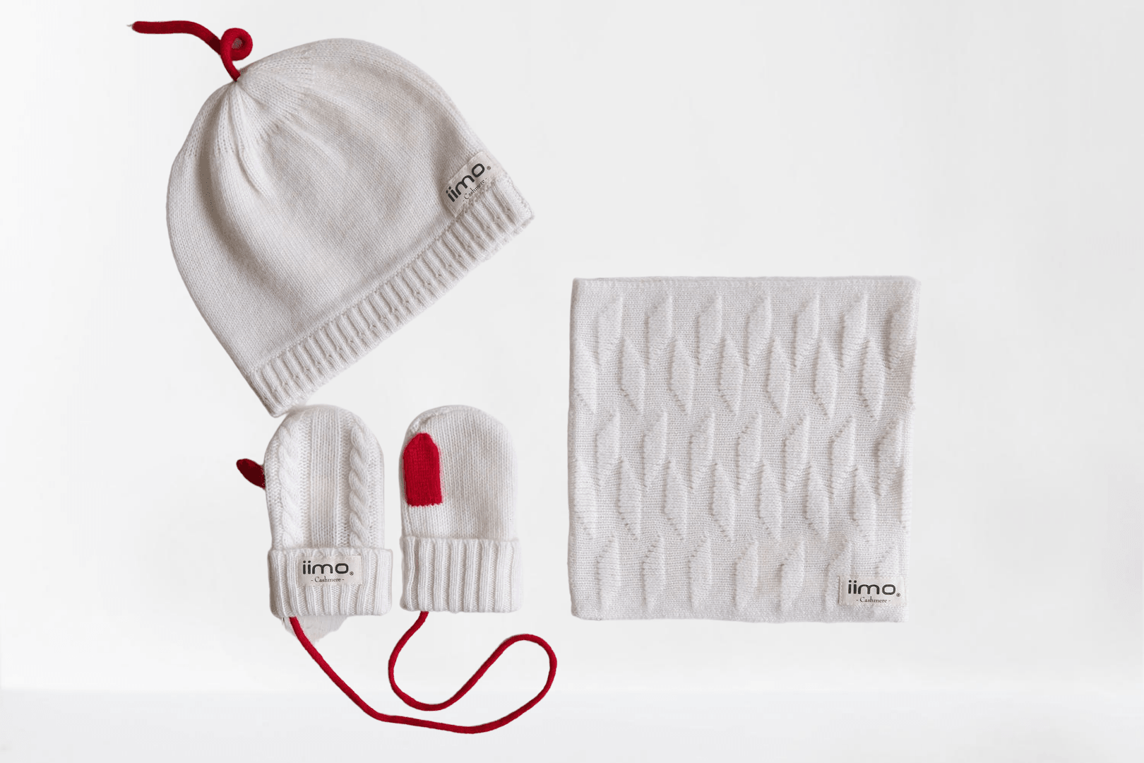 iimo's limited edition cashmere collection including scarf, hat & glove with 100% cashmere.