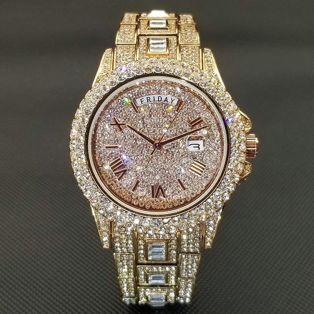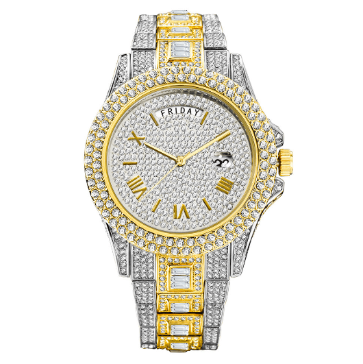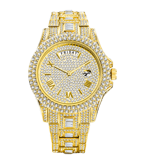 Introducing our Luxury Crystal Watches! These iced out watches are perfect for the fashion-savvy person who wants to make a statement. These luxurious watches feature Swiss Geneva movements for precise timekeeping, and are plated with 18K gold nano vacuum for a stunning look that won't fade. With a 30M daily waterproof rating, they're perfect for everyday wear. Don't miss out on this must-have accessory!