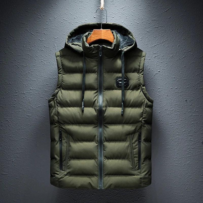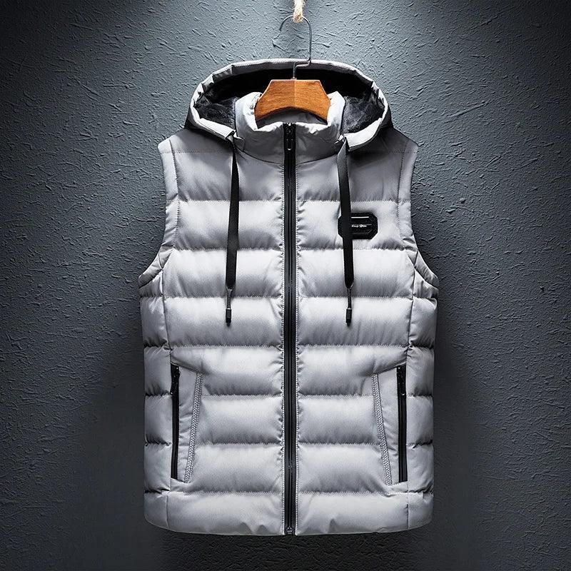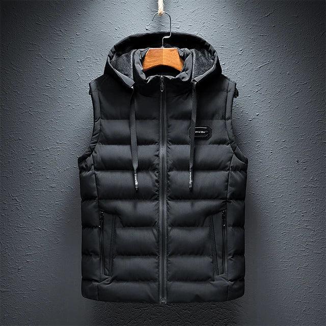 Invest in quality and durability with the Men's Hooded Sleeveless Jacket. Constructed with windproof materials and insulated filling, this jacket provides reliable warmth and protection against the cold, making it your go-to choice for winter layering.