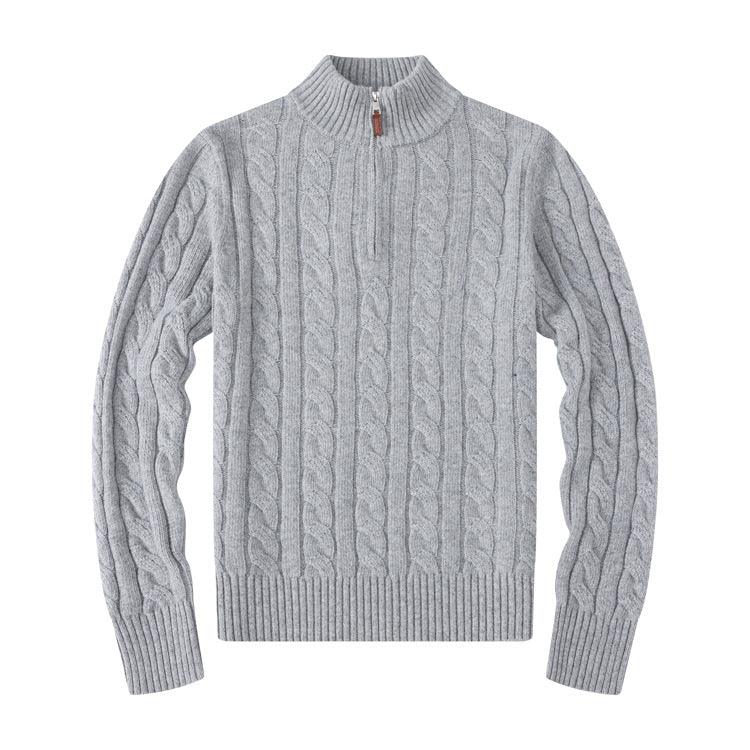 A men's wool casual sweater, possibly featuring a small pony pull and a half-zip design. Here are some key points based on your description:
