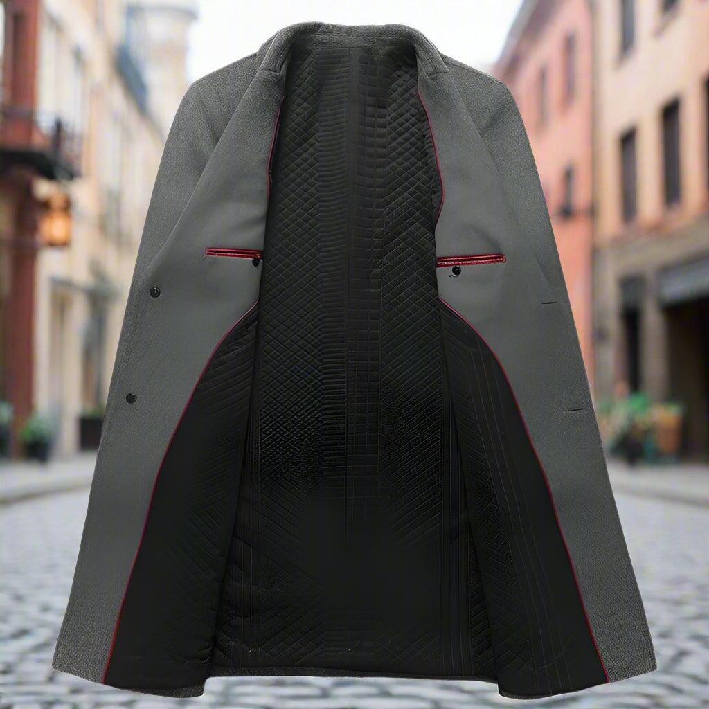 The "Men's Wool Trench Coat" is a fashionable and high-quality winter jacket designed for men. Here are some key features and details about this coat: