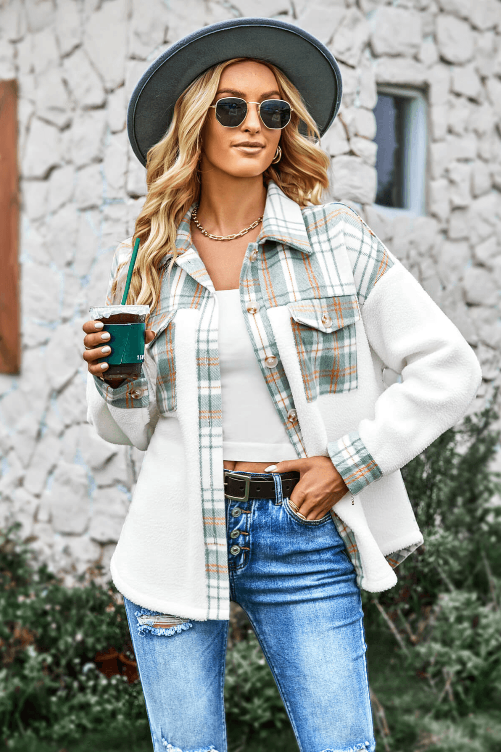 Looking for something different in your outerwear rotation? Check out our Plaid Contrast Button Front Spliced Sherpa Jacket. This stylish piece features a classic collar, dropped shoulders and button front detailing. The best part? It's lined with cozy sherpa fabric, making it the perfect choice for chilly days. Layer it over your favorite jeans and boots for a pulled-together look. Don't miss out on this must-have jacket – add it to your wardrobe today!