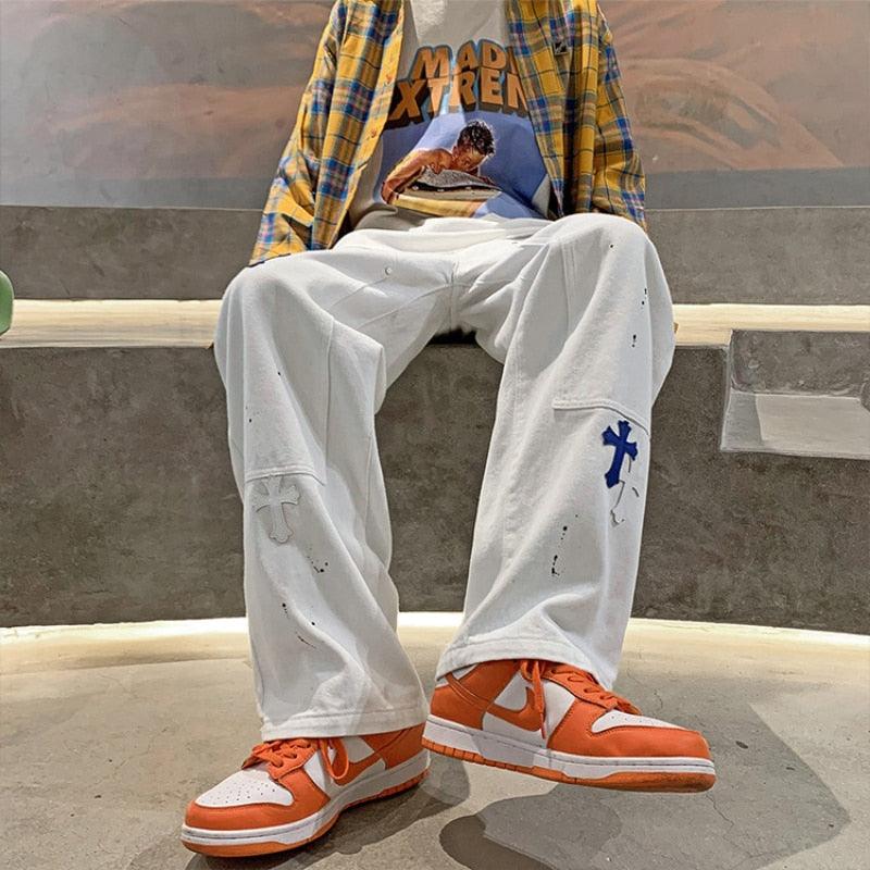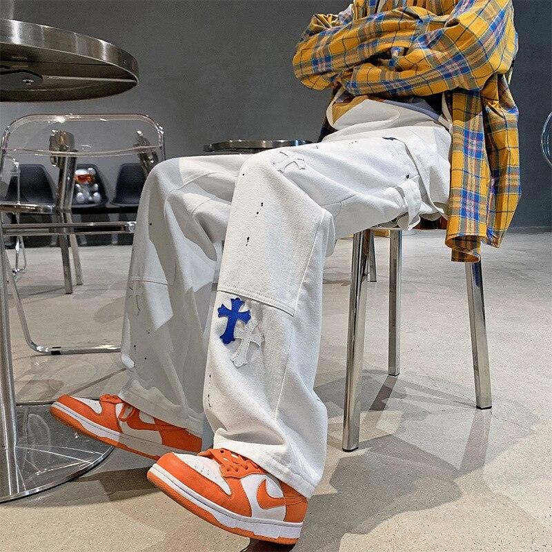 Introducing the new Retro Punk Pocket Loose Jeans: the perfect combination of style and function. This high street fashionable jeans is designed for men to stand out in any season. With its hip-hop look and vintage feel, these pants will make heads turn. The loose fit allows a great range of movements throughout the day and provides maximum comfort, while its straight cut gives it a sleek edge. Additionally, it features multiple pockets to store your essential items, so you don't have to worry about losing them. We also provide plus sizes for those who need extra room or just prefer a relaxed fit. So if you want to take your style game up a notch with an edgy touch - go with our Retro Punk Pocket Loose Jeans!
