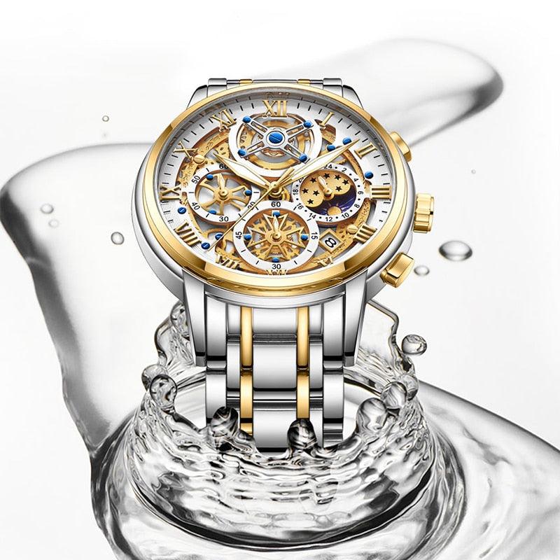 Introducing our Sports Waterproof Wristwatch – the epitome of style for both professional and leisure settings. This timepiece seamlessly merges fashion with function, boasting features such as a chronograph, automatic calendar, waterproof design, shock resistance, and luminous elements. Versatile and adaptable, it's the perfect accessory for any occasion, offering impeccable style and practicality in one package. Elevate your look with the embodiment of sophistication and performance.