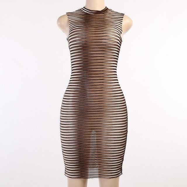 This Stripe Printed O-neck Party Mini Dress is the perfect dress for both day and night events. Crafted from an exceptionally lightweight fabric, this classic sleeveless bodycon design has an o-neck collar to flatter your neckline, plus striped print detailing to make a bold fashion statement. The midi length hem flatters your silhouette and gives you a sleek and slim silhouette. Perfect for special occasions or simply heading out on the town, this mini dress offers endless style possibilities. The comfortable stretchy material ensures you can move with ease, whether that be out at the beach or on the dancefloor. With a versatile finish suitable for any occasion and pairing ability with various outfits, you'll be ready to make waves wherever you go!