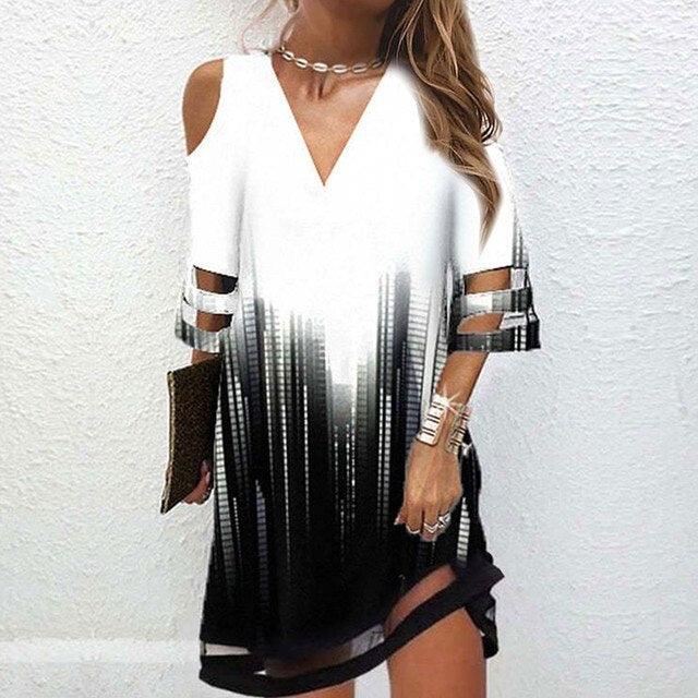 The V-neck summer tie-dye dresses you mentioned are made of polyester material. Polyester is a synthetic fabric known for its durability and wrinkle resistance. It is commonly used in clothing because of its lightweight and breathable properties, making it suitable for warm weather. The polyester fabric used in these dresses ensures that they are comfortable on the skin, providing a soft and breathable feel. This can be especially desirable during the summer months when you want to stay cool and comfortable while wearing a dress.