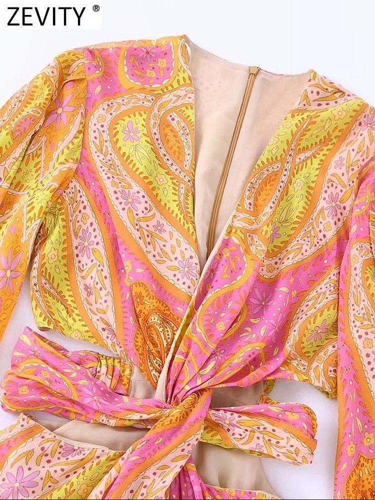 Introducing the Zevity Women’s Vintage V-Neck Cashew-Nuts Floral Print Chiffon Mini Dress! This stylish and unique dress is perfect for a night out on the town or an evening stroll with friends. Crafted with all-natural and eco-friendly fabrics, this elegant garment features a daring plunge v-neckline and long sleeves to accentuate your figure. The chic floral print and cashew nuts pattern gives this dress its signature vintage vibe, while the twist hollow out design is sure to make you stand out in any crowd. Whether you're dressing up for a special occasion or simply want to add some class to your wardrobe, the Zevity Women's Vintage V-Neck Cashew-Nuts Floral Print Chiffon Mini Dress has you covered!
