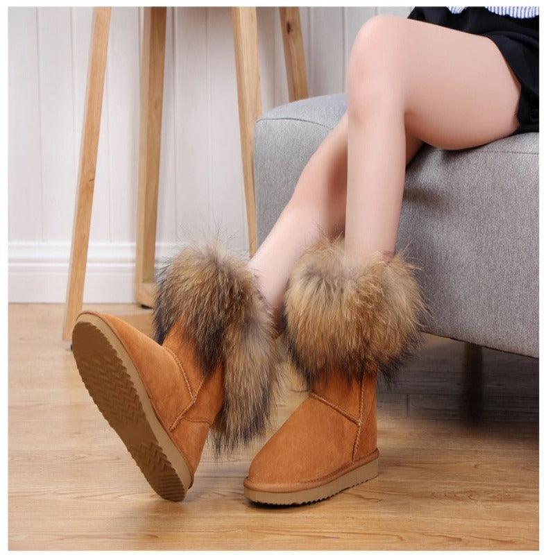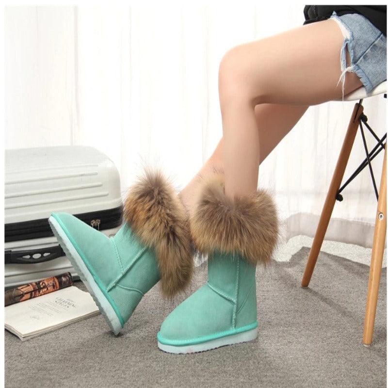 Style: Women's Fox Fur Snow Boots are designed to be stylish and trendy. They can complement a variety of winter outfits and add a touch of luxury to your cold-weather wardrobe.
